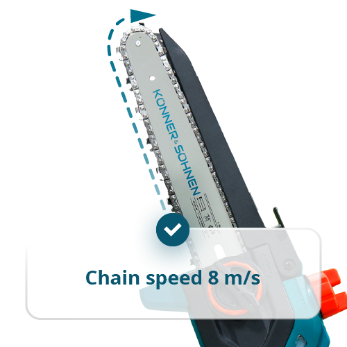 - 8″ bar length and 8 m/s chain speed – easily cuts branches up to 100 mm in diameter, perfect for tree trimming and carpentry work.
