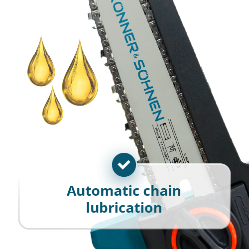- Automatic chain lubrication – ensures continuous lubrication during operation, reducing wear and extending the service life of the cutting equipment (chain and guide bar).