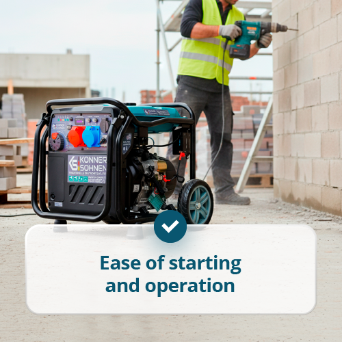 • High-Power Inverter Technology. The built-in electronic unit with microprocessor control manages generator operation and delivers a stable output voltage of 230V 50Hz with a pure sine wave, suitable for sensitive electronics.