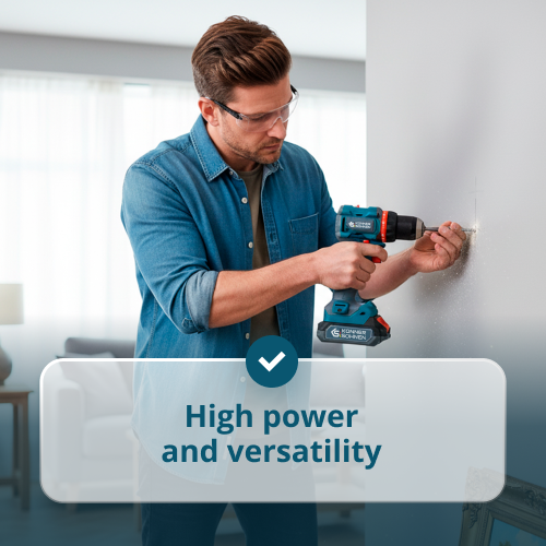 • High power and versatility – 60 Nm drill with 2 operating modes: drilling and screwing, and 23 torque settings; angle grinder with adjustable speed 2500–10,000 rpm; and rotary hammer with 2 J impact energy and 4 modes: drilling, hammer drilling, hammer with rotation, and hammer only – all handle a variety of tasks.