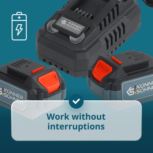• Continuous work – two 4.0 Ah batteries and a 4.5 A charger allow one to charge while the other is in use.