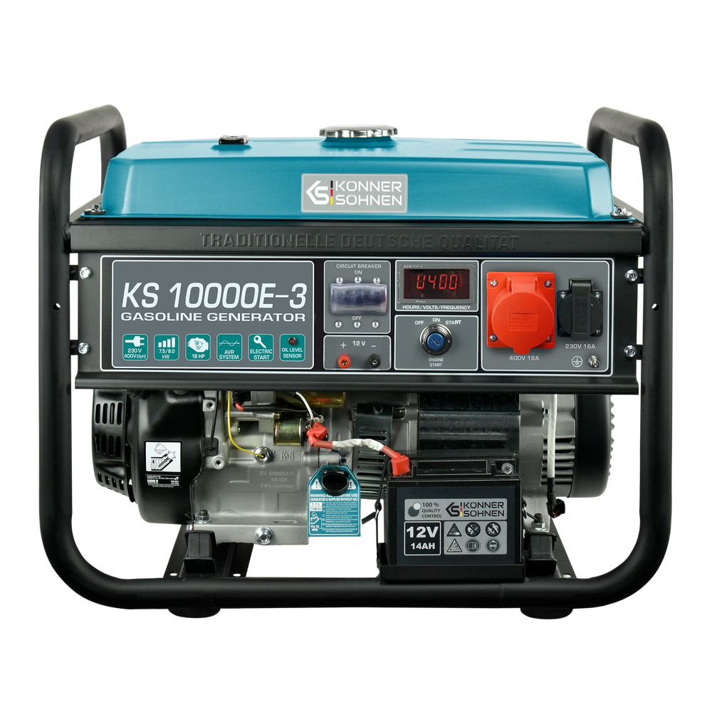 “Könner & Söhnen” generators are equipped with an enlarged steel fuel tank, which extends the generator’s operating time without refueling. The fuel level indicator is located on the tank for ease of use.