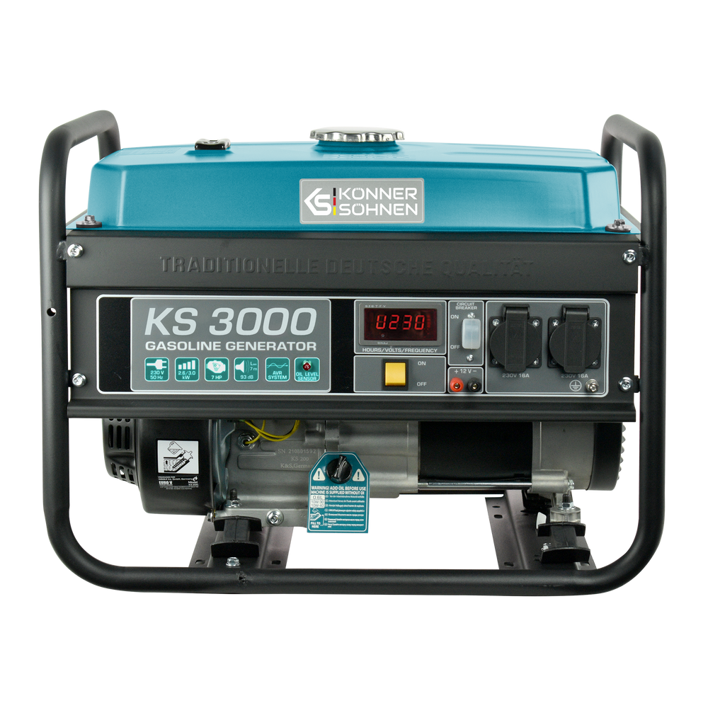 “Könner & Söhnen” generators are equipped with an enlarged steel fuel tank, which extends the generator’s operating time without refueling. The fuel level indicator is located on the tank for ease of use.