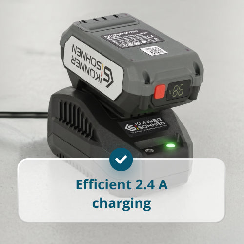 KS 20V2-1-DUAL starta komplekts ir praktisks risinājums darbības uzsākšanai un efektīvai darbībai ar 20V bezvadu dārza instrumentiem. Komplektā ietilpst divas litija jonu baterijas ar katras ietilpību 2 Ah un lādētājs ar 2.4 A strāvu, kas nodrošina stabilu uzlādi. Pilnas uzlādes laiks līdz 60 minūtēm.