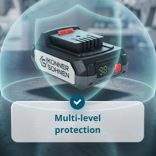 Litija jonu tehnoloģija garantē ilgu kalpošanas laiku, augstu uzticamību un neprasa apkopi. Uzlādes līmeņa indikatori ļauj uzraudzīt atlikušo enerģiju un labāk plānot darbu.