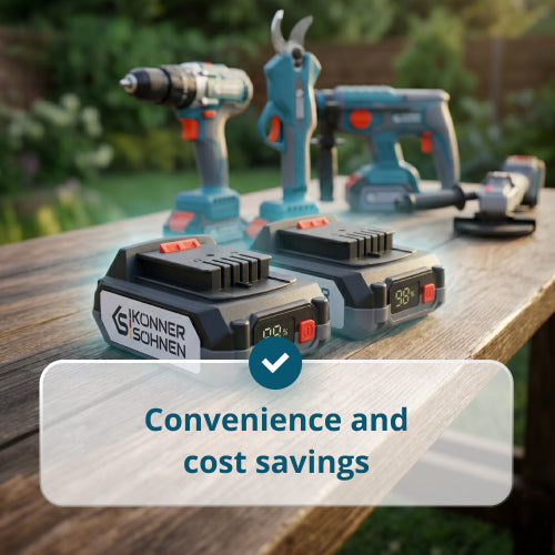 Universālā bateriju sistēma ļauj izmantot viena veida bateriju ar dažādiem 20V instrumentiem. Tas samazina izmaksas, vienkāršo uzglabāšanu un padara darbu organizētāku.