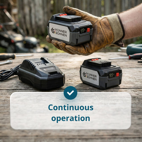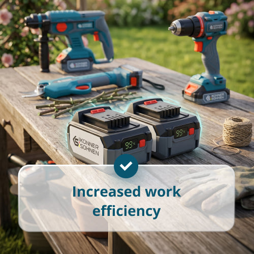 Divu akumulatoru klātbūtne ļauj ievērojami palielināt produktivitāti: kamēr viens tiek izmantots, otrs var tikt uzlādēts. Tas samazina dīkstāves laiku un ir īpaši ērti ilgstoša vai intensīva darba laikā.